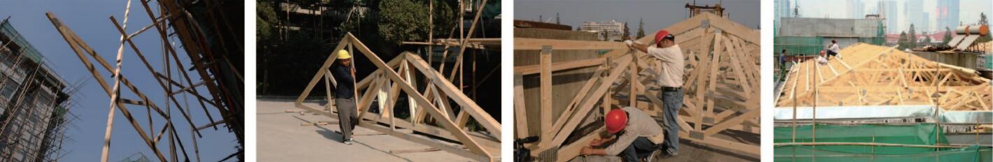 項目中將木桁架屋頂系統(tǒng)、木結(jié)構(gòu)預制墻體系統(tǒng)作為裝配式構(gòu)件,與新建混凝土裝配式建筑中結(jié)合使用。